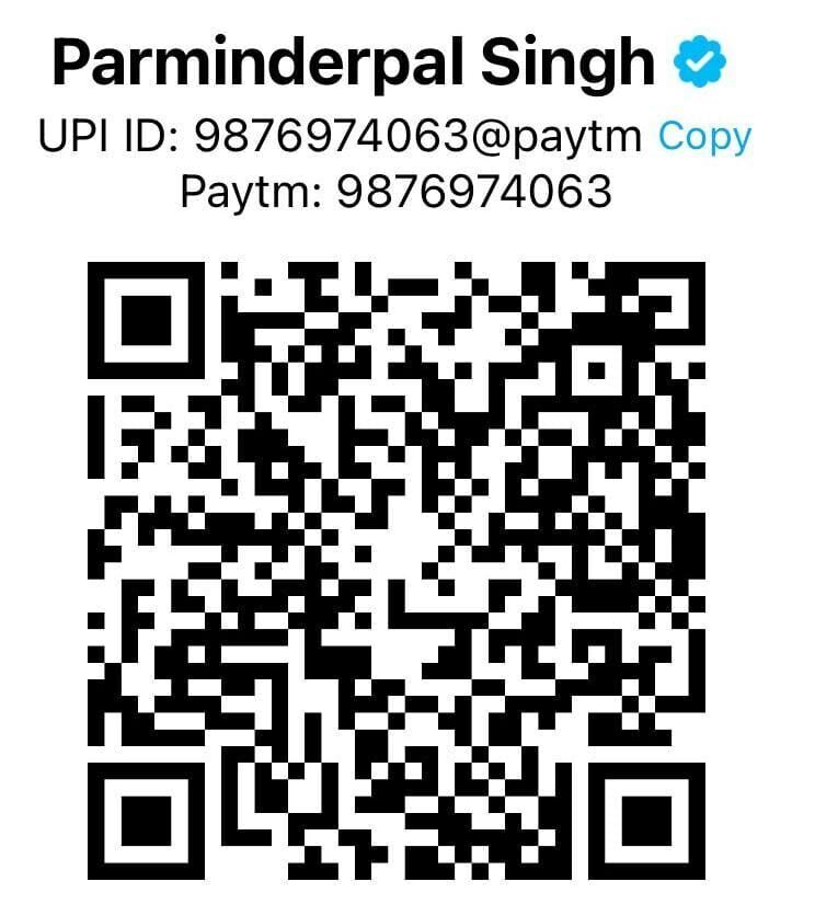 Account Holder Name: Parminderpal Singh Account Number: 41066737792 IFSC Code: SBIN0050117 Branch: SBI sector 22D Chandigarh Bank Name: State Bank of India